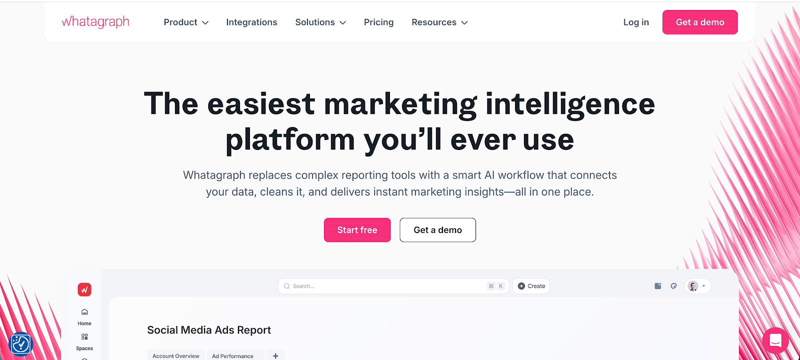 Whatagraph is a reporting platform built for teams that want polished, client-ready dashboards without building everything from scratch. It pulls Facebook ads data and other marketing data into one place, making it easier to track performance across channels.