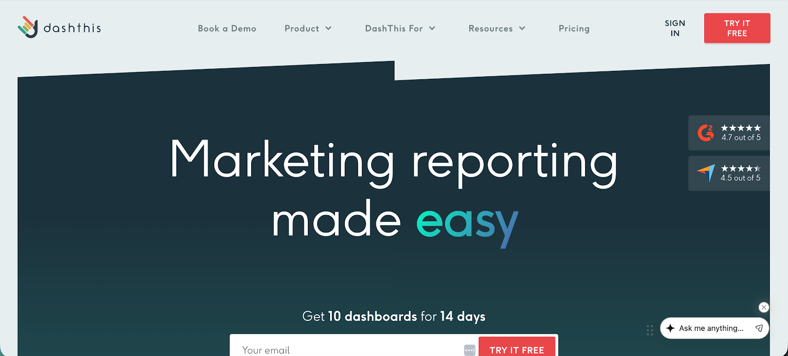 DashThis is a reporting dashboard built for marketers who want a quick way to pull data out of Facebook Ads Manager and turn it into clean, shareable reports. It doesn’t try to do everything, it’s just a reporting tool focused on speed, simplicity, and automated reporting.
