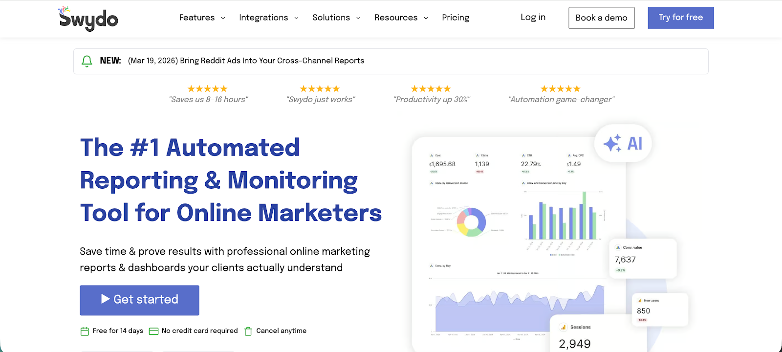 That said, Swydo leans heavily toward presentation over analysis. If you’re looking for deep insights or advanced breakdowns, it can feel limiting. Some users also mention that customization has boundaries, especially when you want very specific layouts or metrics.